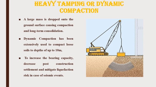 Dynamic Soil Compaction: As seen in Kuwait’s “Sea City” project, engineers use dynamic compaction, dropping heavy weights with duty-cycle cranes to densify sandy ground, reducing liquefaction risk and providing a stable base for construction.