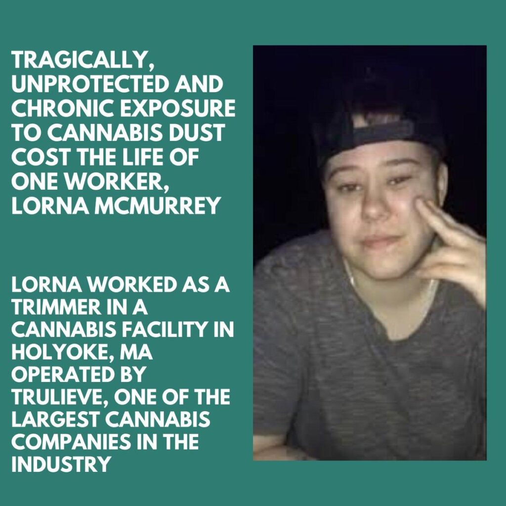 - “My cousin’s death was 100% preventable” said Alisha Bounds. Her cousin, Lorna McMurrey, died just before her 28th birthday from a severe asthma attack after inhaling cannabis dust at a cannabis production facility owned by Trulieve in Holyoke, MA.