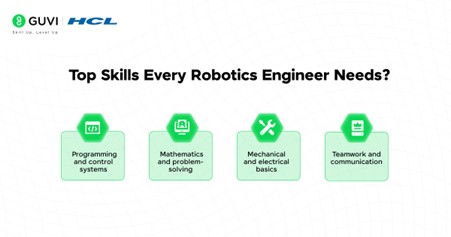 - Industrial Automation, Control Systems & mechatronics: Engineers must understand the integration of actuators and sensors (optical, proximity, and force) to ensure robots can perceive and interact with their environments safely. Designing and maintaining robotic components, including sensors and controllers, for precision tasks. Distributed Control Systems (DCS) and Supervisory Control and Data Acquisition (SCADA) for monitoring and control must be implemented.
