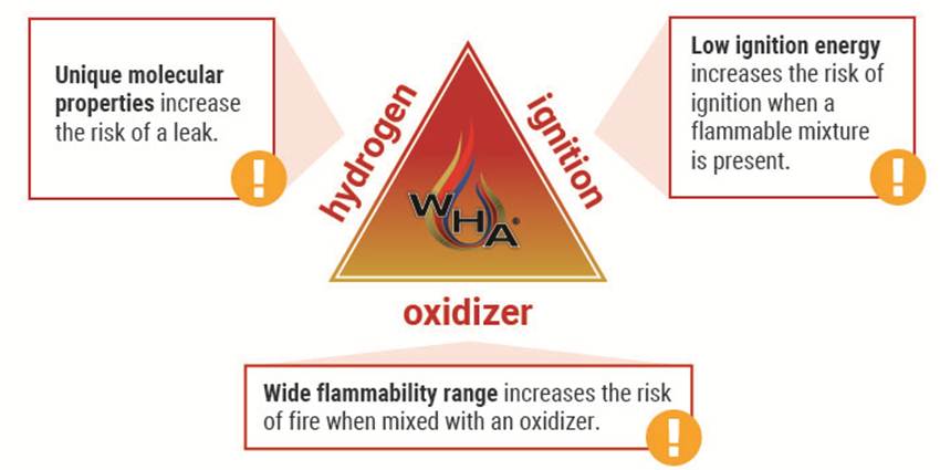 High Flammability and Leakage: Hydrogen is extremely flammable, has a wide range of flammability (4–75 vol%), and its small molecular size makes it prone to leaks. About 25% of hydrogen fires are caused by leaks.